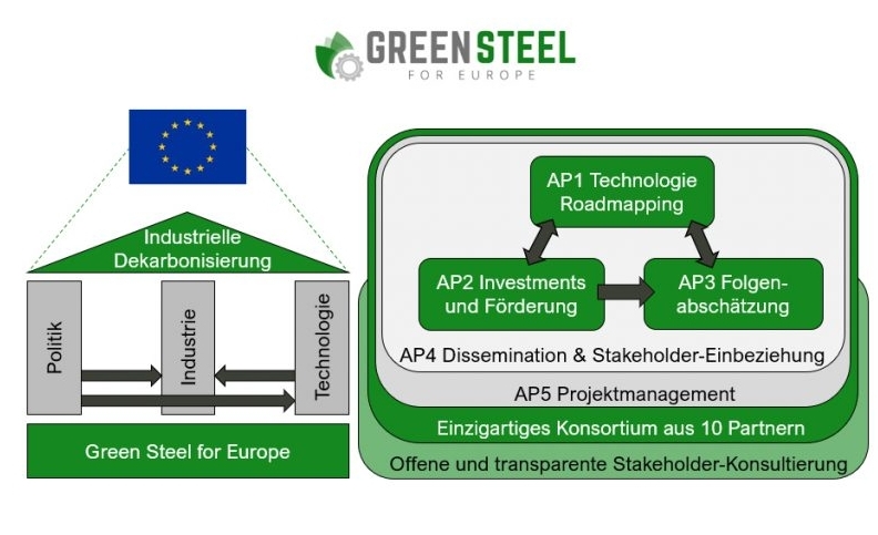 The European Union set concrete targets for the reduction of greenhouse gas emissions in terms of its 2030 climate & energy framework and its 2050 long-term strategy for a climate neutrality. In order to achieve these goals, a transformation of iron and steel production towards CO2-lean or climate-neutral production technologies is necessary. Against this background, “Green Steel for Europe” supports the EU in achieving its climate and energy goals.