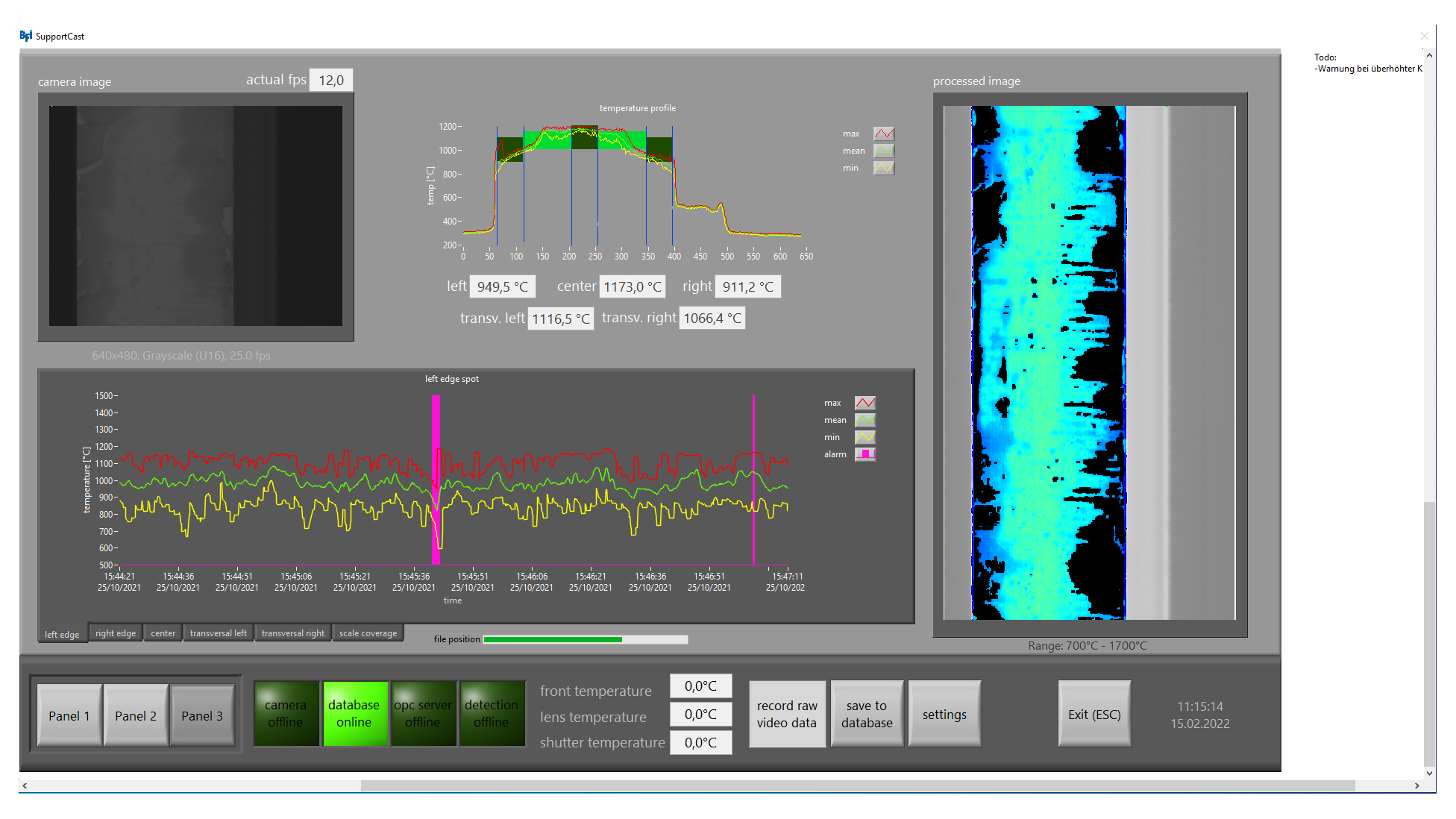 - Verbesserung der Auflösung und Genauigkeit von Messungen der Strangoberflächentemperatur im Strang durch eine innovative Kombination von Wärmebildkamera, aktiver adaptiver Optik und gleichzeitiger Bestimmung des Transmissionskoeffizienten des optischen Weges.