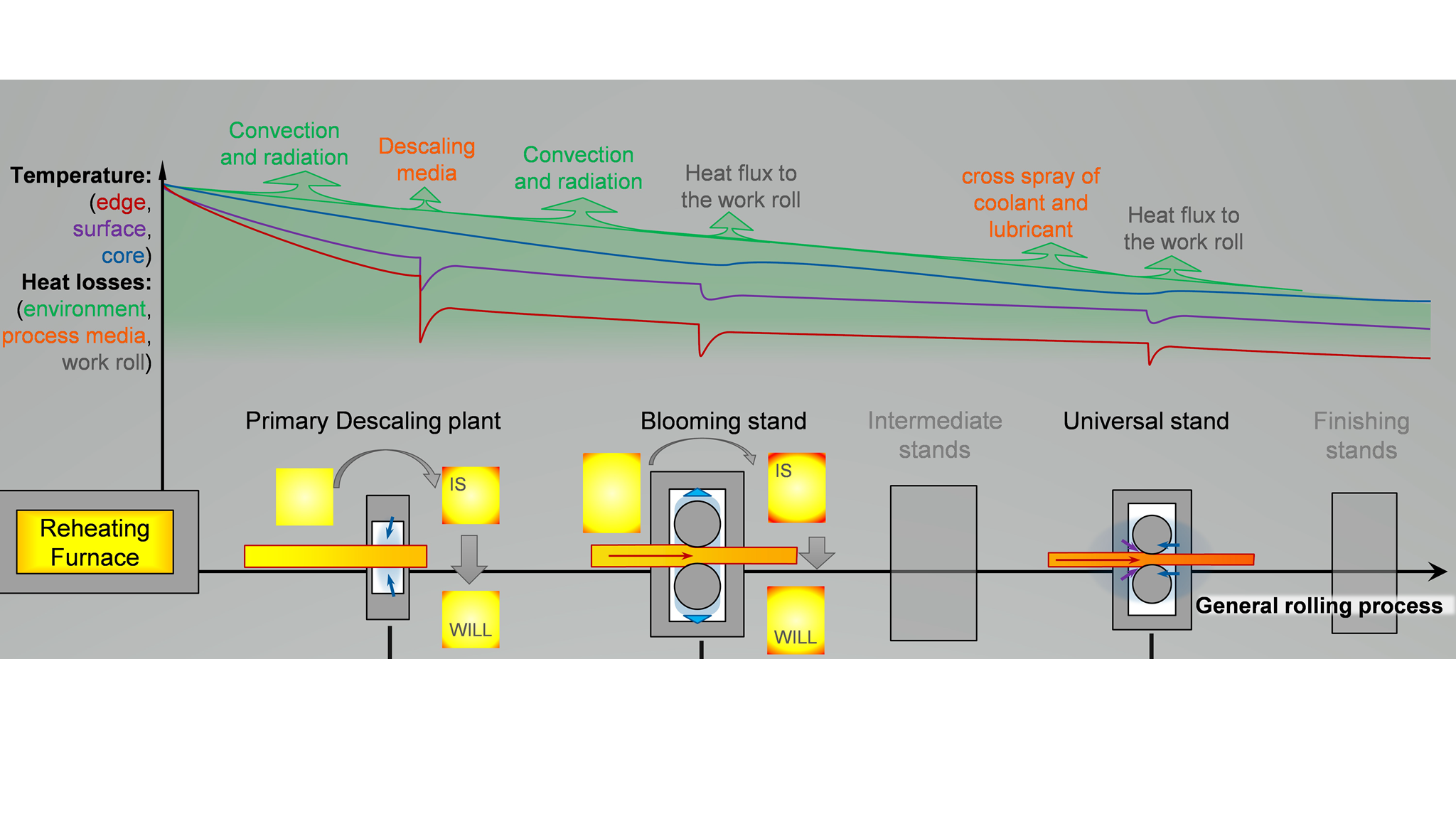 Ein Hauptteil dieses Projektes ist darauf ausgerichtet, die einzelnen Wärmesenken im Prozess genau zu quantifizieren und durch intelligente, an den Prozess angepasste Lösungen zu minimieren, ohne den Walzprozess und die Produktqualität einzuschränken. Die Arbeitspunkte in ReduHeatLoss sind: