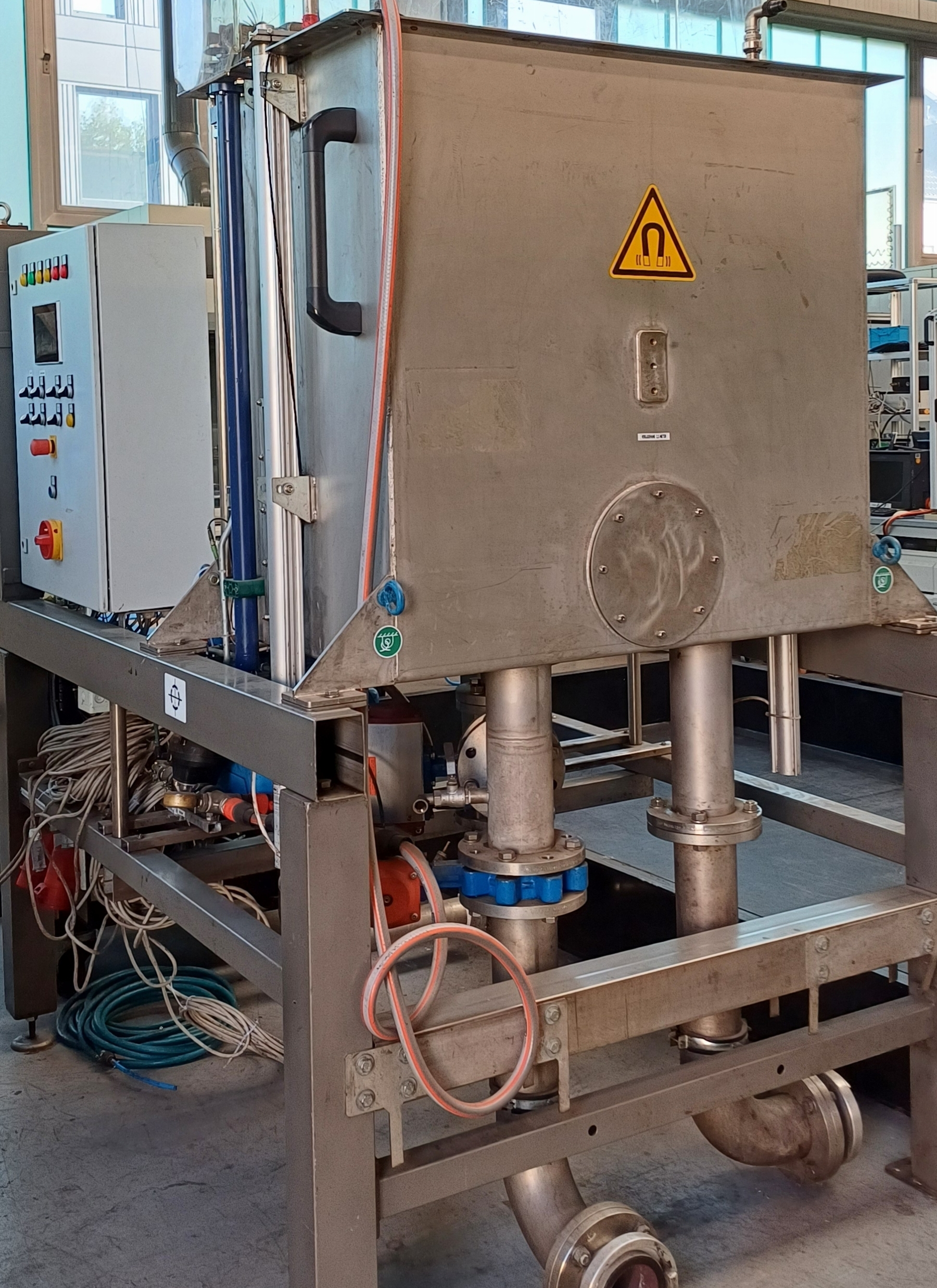 Established technologies for separating particles from cooling water, such as gravel and sand filters, produce a concentrate stream up to 5%–10% of the cooling water stream with low solid contents (<5 g/L), which must be dewatered with a high effort. As part of funded R&D projects (e.g. InspireWater), a magnetic separation process was developed at BFI as an alternative to gravel and sand filters. This process allows the separation of magnetisable particles and recyclable materials from liquid media such as cooling waters, emulsions, oils and polymer quenching baths. The amount of concentrate produced is 10 times lower than with conventional processes.