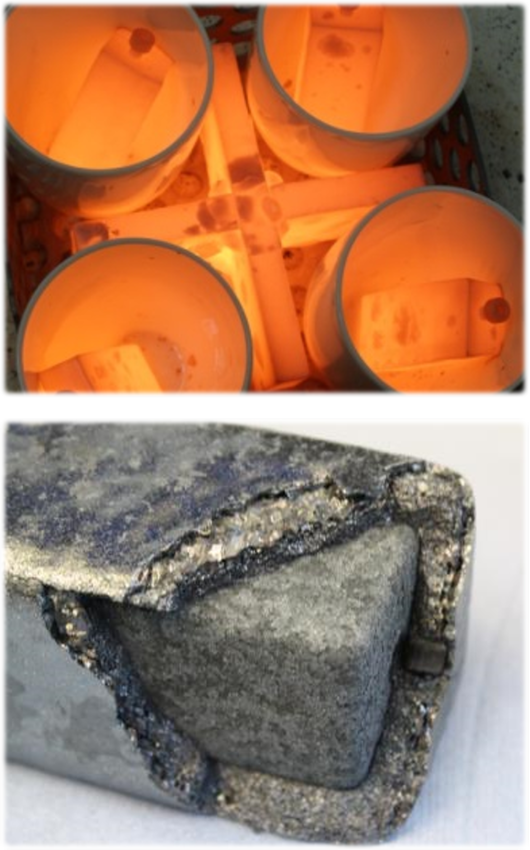 During reheating for the hot forming of steel, a reaction with the components of the gas atmosphere always takes place on the surface in the presence of oxygen carriers. The use of hydrogen as a fuel gas is expected to have more serious effects on product quality than natural gas combustion. The consequences can be increased material loss due to oxidation (scale formation), material changes near the surface due to diffusion processes (decarburization, internal oxidation, embrittlement due to hydrogen absorption) and descaling problems due to more adhering oxides (scale scars, red scale, etc.). To evaluate these material reactions, the BFI has several laboratory furnaces with different test parameters at its disposal (laboratory furnaces).