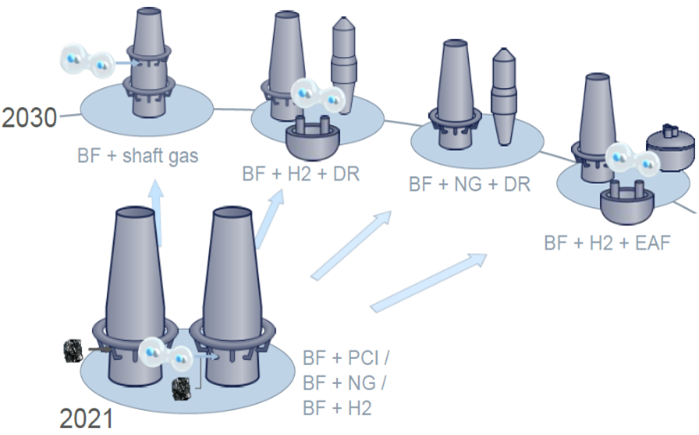 The decarbonisation of the steel industry is an extensive, complex and lengthy process that was analysed as part of the RFCS projects ‘Low Carbon Future’ and ‘GreenSteel for Europe’. Transformation roadmaps with plausible scenarios and recommendations for the necessary boundary conditions were created. The central processes and focal points include the conversion of integrated steelworks to direct reduction with hydrogen and electric arc furnaces (EAF/ESF).