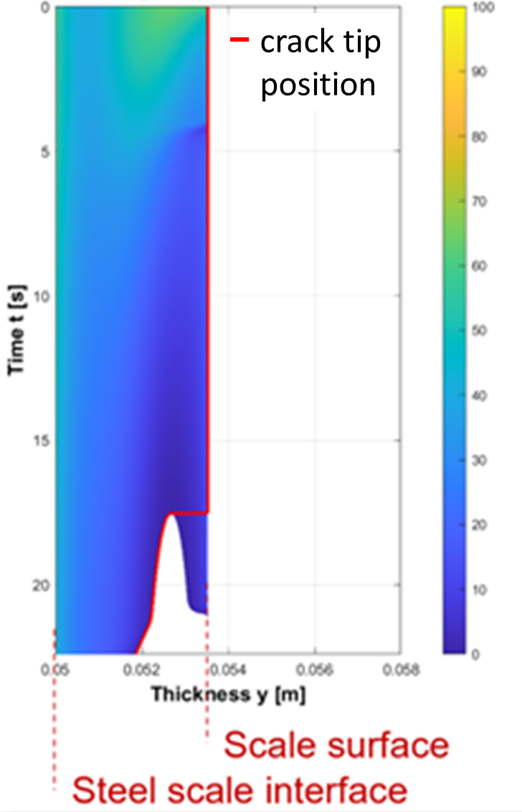 Scale protection coatings are a special field. They have been developed and tested in recent years (laboratory furnaces) and adapted for various applications. The basis is formed by coatings that serve as an oxygen barrier and thus minimize scale and material losses (TempKorroSchu, HiPerScale). Other coating systems and adaptations additionally reduce tool wear (NanoZunKonLub), improve descaling (HiPerScale) and reduce secondary scale formation and strip roughness (INFIRE). The systems are currently being tested for their effectiveness under modified reheating conditions - e.g. the use of H2 in reheating furnaces (H2HotRoll, HYDREAMS, E-ECO Downstream). Various online-capable calculation models for reheating, scale formation, cooling and descaling are available for the prediction of scale-related surface defects (INFIRE, ReduHeatLoss, CAPRI). These models are validated by accompanying industrial tests and implementation of e.g. optical process measurement technology such as residual scale detection (HiPerScale, INFIRE, ReduHeatLoss).