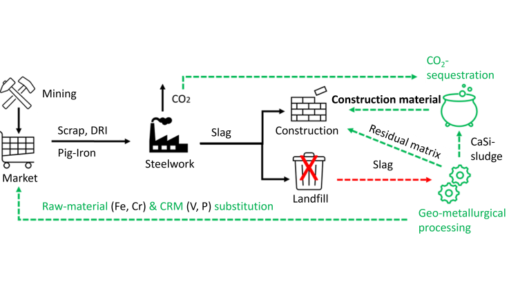 GeoCRM - Geometallurgical processing of steelmaking slag for recycling critical raw materials and CO2 binding