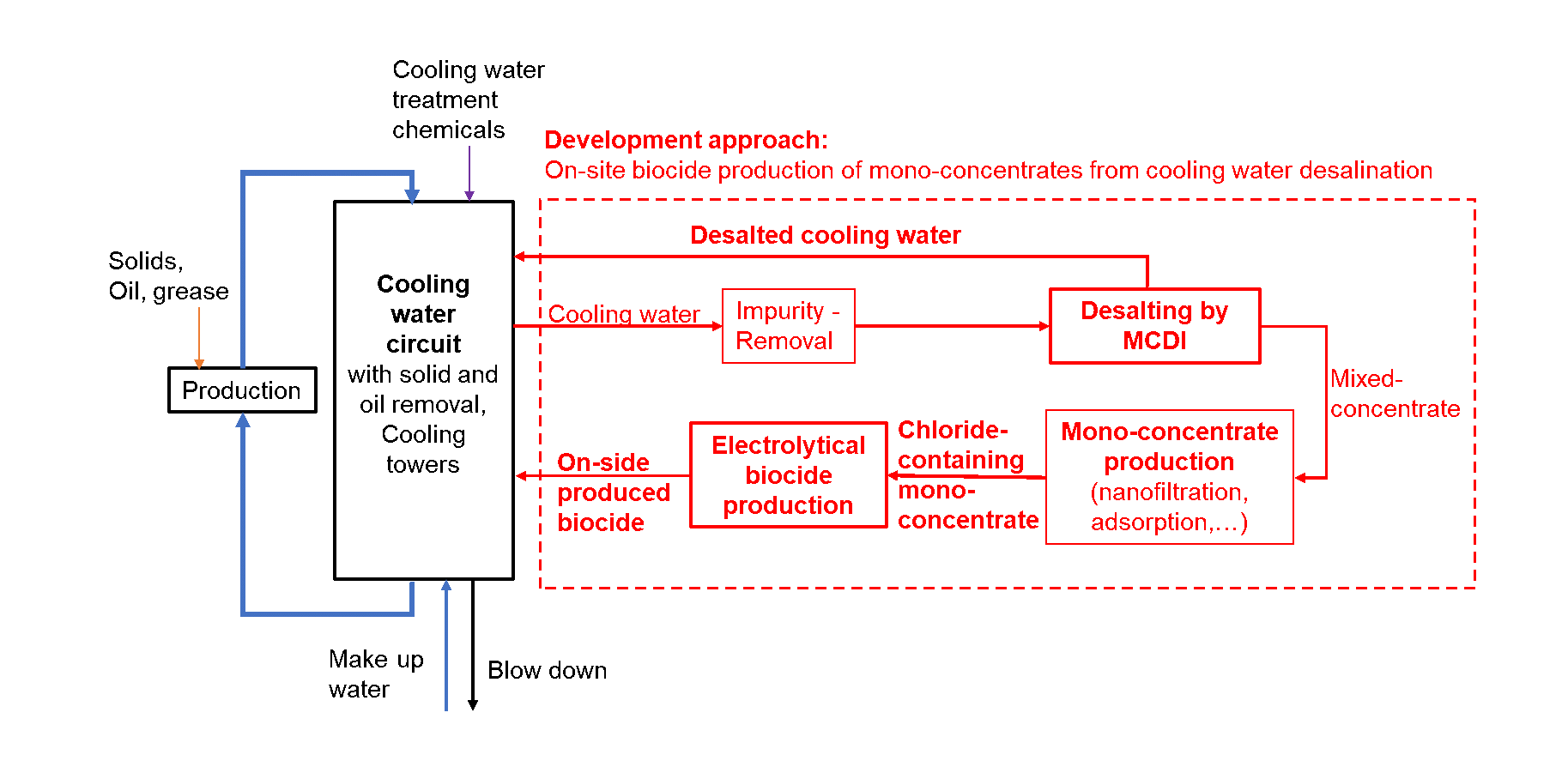 - Development of a reliable and energy-efficient process technology for cooling water desalination,