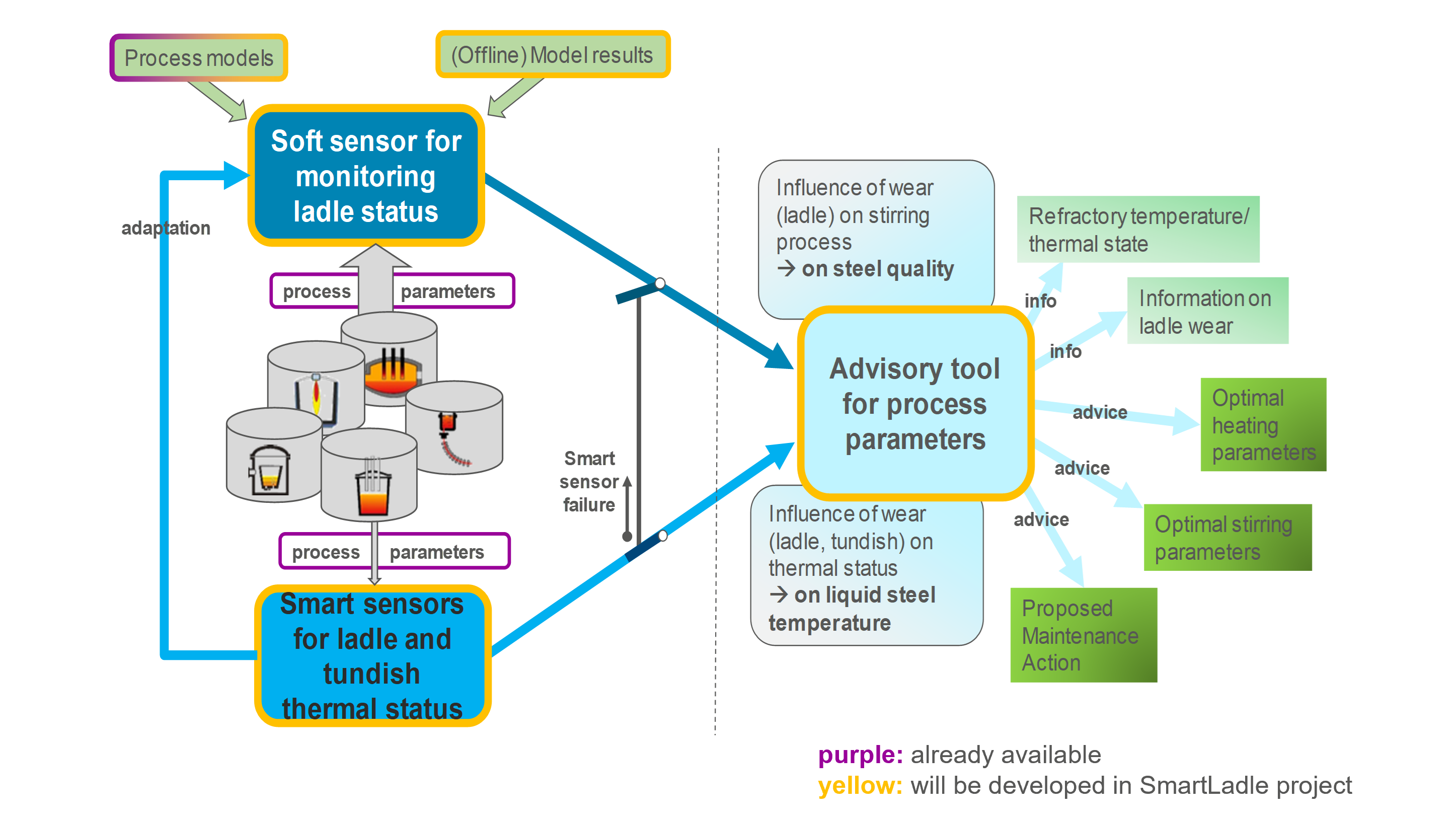 SmartLadle - Intelligente Berücksichtigung des aktuellen Pfannenzustands, überwacht durch neuartige Sensoren, bei sekundärmetallurgischen Prozessparametern und bei Pfannenwartungsstrategien